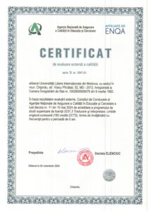 Misiunea educaţională a Facultății Limbi Străine include domeniul general de studiu 023 Filologie, domeniul de formare profesională 0231 Studiul limbilor, Specialitatea 0231.3. Traducere și interpretare (Limba franceză și engleză, engleză și spaniolă, engleză și germană, engleză și chineză și engleză și coreeană), cu un număr total de credite de studiu 240 ECTS care corespund prevederilor Codului Educaţiei al Republicii Moldova nr. 152 din 17.08.2014; Nomenclatorului domeniilor de formare profesională şi al specialităţilor pentru pregătirea cadrelor în instituţiile de învăţământ superior, ciclul I, aprobat prin Legea nr. 142 din 07.07.2005 și cel din din 12.06.2024, HG 412/2024; Planului-cadru pentru studii superioare, aprobat prin ordinal ME nr. 1045 din 29 octombrie 2015 și nr. 510 din 07 aprilie 2025; Regulamentului privind organizarea studiilor superioare de doctorat, ciclul III, aprobat prin Hotărârea Guvernului nr. 1007 din 10.12.2014, alte documente reglatorii naţionale şi internaţionale. În conformitate cu prevederile legale, formarea în specialităţile de la Facultate oferă posibilitatea dezvoltării personalităţii tinerilor atât în plan profesional, cât şi în cel al valorificării disponibilităţilor individuale, a aptitudinilor şi capacităţilor de care ei dispun prin activităţi curriculare şi extracurriculare care oferă deschideri către abordări inovaţionale naţionale şi internaţionale ale asimilării cunoştinţelor, formării abilităţilor şi competenţelor de specialitate.