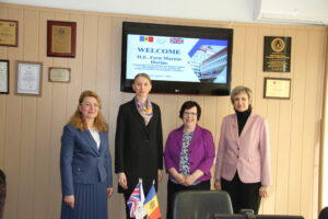 Întâlnirea cu echipa managerială ULIM, formată din prof. univ. dr. hab. Elena Prus, prorector pentru cercetare științifică și studii doctorale, conf. univ. dr. Valentina Ciumacenco, prorector pentru relații internaționale, și conf. univ. dr. Viorica Lifari, decan al Facultății de Limbi Străine, a oferit prilejul unor discuții valoroase privind extinderea cooperării academice și culturale cu instituții din Regatul Unit. De asemenea, a fost abordată posibilitatea modernizării Centrului Britanic găzduit de ULIM.