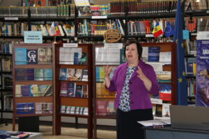 În continuarea vizitei, Excelența Sa a susținut o lecție publică captivantă cu tema „Rolul femeii în diplomație”, desfășurată în incinta Bibliotecii ULIM, în fața studenților de la Facultatea de Limbi Străine. Evenimentul a fost moderat de conf. univ. dr. Viorica Lifari, decanul facultății.